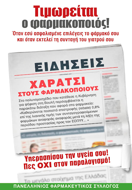 “ΧΑΡΑΤΣΙ” θα πληρώνει ο Φαρμακοποιός,για τους ασθενείς που επιλεγούν το ‘Φάρμακό” τους! 12/06/2018 / Ανακοινώσεις, Επικαιρότητα, Ενημέρωση Κοινοποίηση