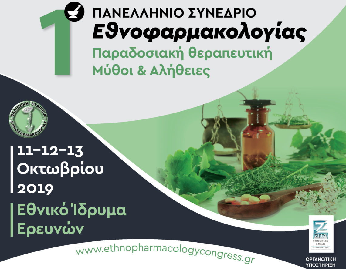 Εκ μέρους του Διοικητικού Συμβουλίου της Ελληνικής Εταιρείας Εθνοφαρμακολογίαςέχω την τιμή και την χαρά να σας προσκαλέσω στο Πανελλήνιο Συνέδριο Εθνοφαρμακολογίας με θέμα «Παραδοσιακή Θεραπευτική – Μύθοι και Αλήθειες» που θα διεξαχθεί στην Αθήνα, στις 11,12,13 Οκτωβρίου 2019, στο Εθνικό Ίδρυμα Ερευνών.