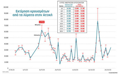Σύμφωνα με το ρεπορτάζ (“Καθημερινή”, Τασούλα ΚαραΙσκάκη), οι αριθμοί, καθηλωτικοί, άκρως ανησυχητικοί, προκύπτουν από τις μετρήσεις του ιικού φορτίου στα αστικά λύματα του λεκανοπεδίου, τις οποίες διενεργεί η ομάδα του Νίκου Θωμαΐδη, καθηγητή Αναλυτικής Χημείας στο Εθνικό και Καποδιστριακό Πανεπιστήμιο Αθηνών.